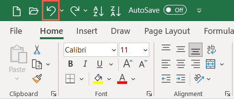 Excel on Windows, Mac, and the web each have the Undo button which is a rounded arrow pointing left. You’ll find it in the Quick Access Toolbar on Windows and Mac and on the Home tab in Excel on the web.