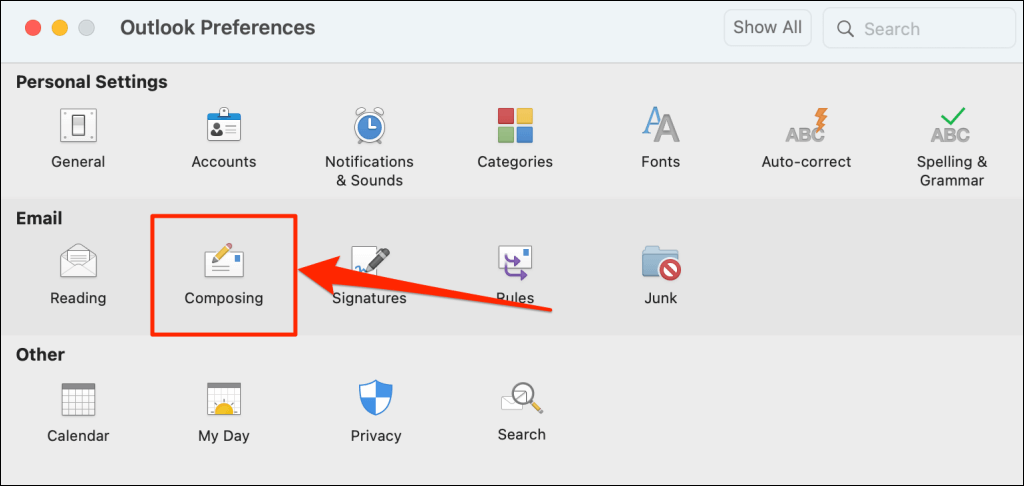 - Select Composing in the “Email” section.