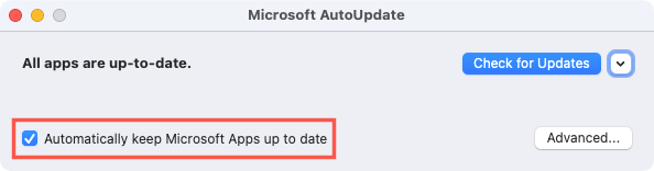 To turn on automatic updates, check the box for Automatically keep Microsoft Apps up to date. When one is available, you’ll receive a message letting you know.