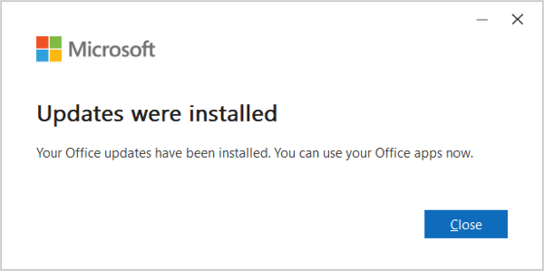 - When complete, you’ll see a message that your updates were installed. Select Close.