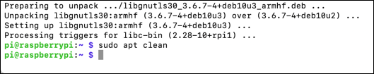 - Once the packages have finished updating, it’s a good idea to tidy up and clear any now-redundant package files by typing sudo apt clean and hitting enter.