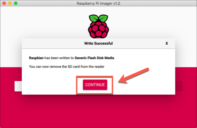- The Raspberry Pi Imager tool will take some time to download and write Raspbian to your microSD card. Once the process is complete, press Continue to end the tool.