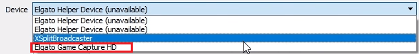 Next, you’ll need to choose **‘Elgato Game Capture HD’ **in the device dropdown box. OBS will now pick up the video from your console.