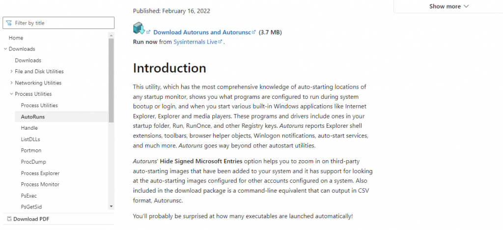 - * To get started with Autoruns, download the tool from Sysinternals.