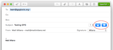 Since encrypting email is one of the fundamental uses for OpenPGP encryption, integration with your email program of choice is the next step. Many packages—such as GPG Suite by GPGTools—will automatically install a plugin for popular email clients, including Apple Mail, Microsoft Outlook or Mozilla Thunderbird.