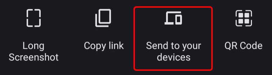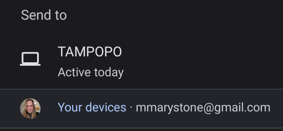 When you use the share button in Google Chrome for Android, one of the options is Send to your devices. If you’re signed into Chrome on multiple devices, use this option to send a link from one device to another.