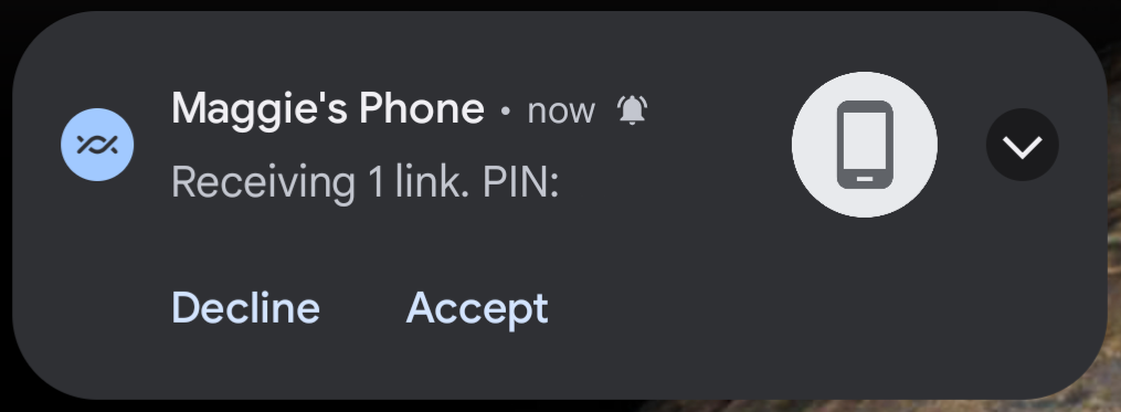 Select a device to share the link with. The other device will need to accept or decline the share.