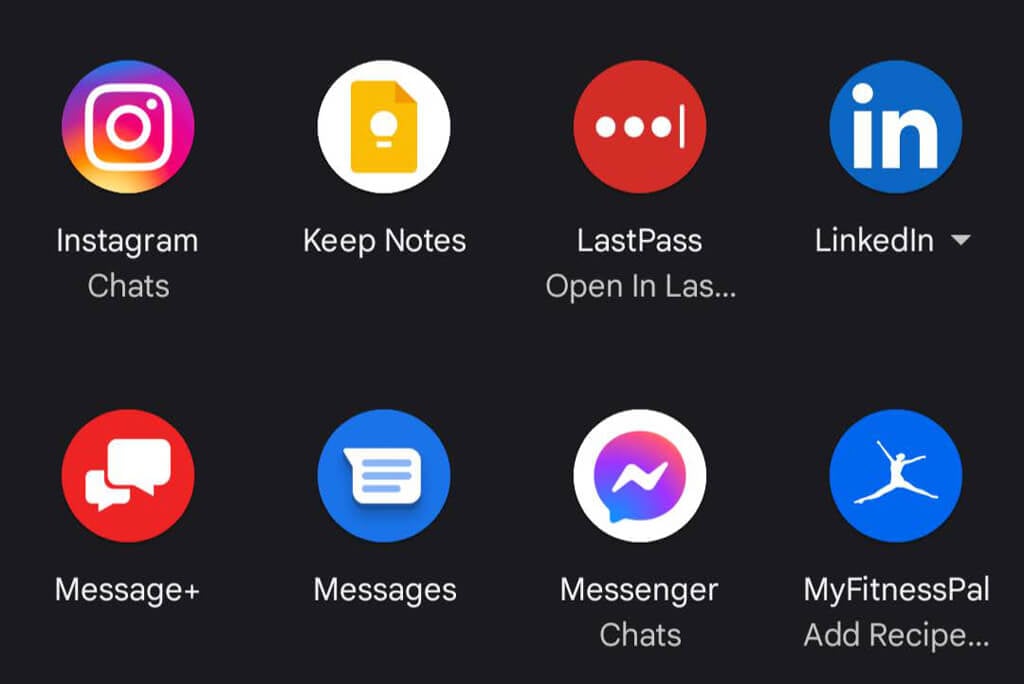 - A list of all the other apps on your device that you can use to share links. These include social media (such as Instagram, LinkedIn, and Twitter) , email (such as Gmail, ProtonMail, and Microsoft Outlook), and private messaging apps (such as WhatsApp, Google Chat, or GroupMe).