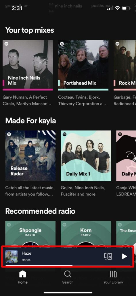 - Once the song shows as Now Playing at the bottom of your screen, tap on it to open the song playback page.