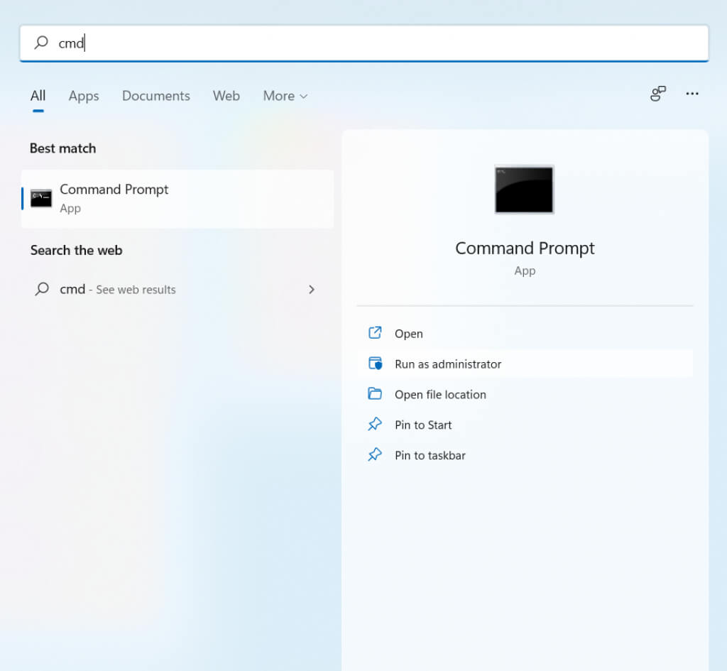 - * To use the Taskkill command directly, we first need to open the Command Prompt. Simply search for cmd in the Start Menu and select Run as Administrator.