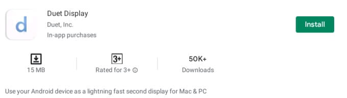 Launch the Play Store, search for Duet Display, and click Install to download the app on your Chromebook.