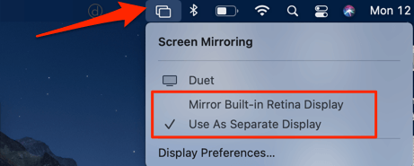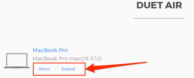 - Duet lets you mirror and extend your Mac’s display. If your Mac has a Touch Bar, you can easily toggle between both the “Mirror Displays” or “Extend Desktop” modes.