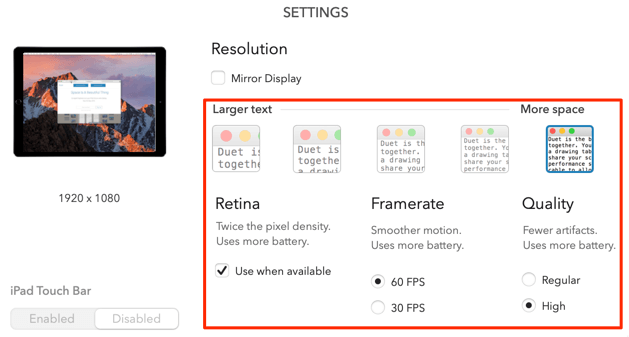 2. Retina Display: If you check the Retina option, Duet will simulate a retina display on your Chromebook by doubling the pixel density. While this setting will improve picture quality, it’ll cause the app to consume more battery power.