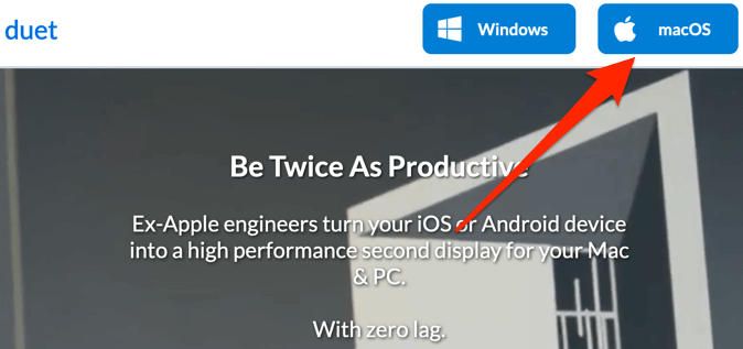 Visit the Duet Display website and click the macOS buttons to download the app client. Install the app on your device and proceed to the next step to use your Chromebook as a second monitor.