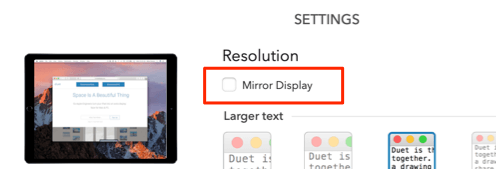 To switch display mode on non-Touch Bar Macs, go to Duet’s settings, select Adjust Settings and check Mirror Display.