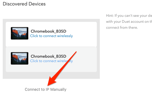 The app should automatically detect your Chromebook or other “Duet Air” devices connected to your Wi-Fi network.
