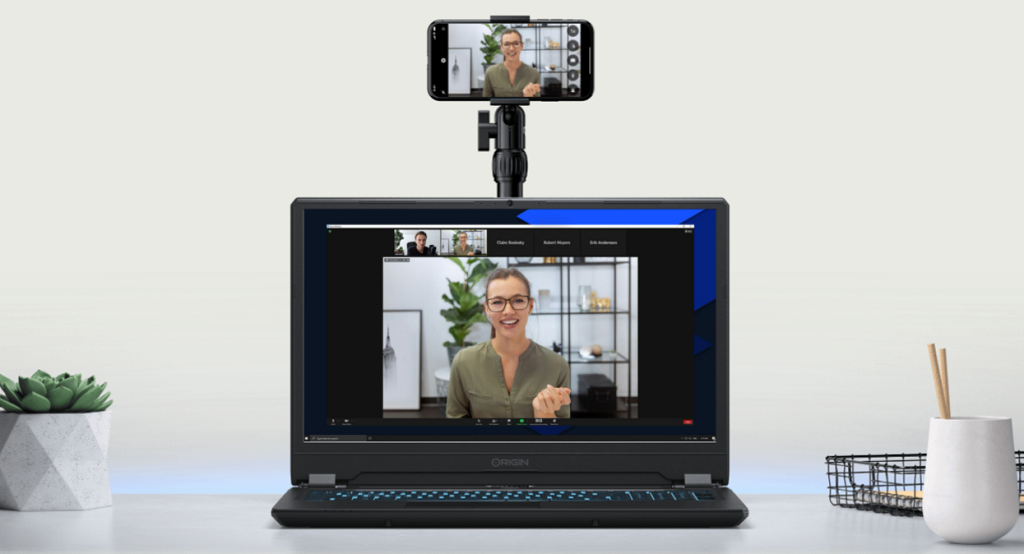 A smartphone is a good choice as a webcam because the picture quality of a phone’s selfie-cam or front-facing camera is better than most built-in laptop webcams.