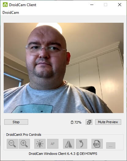 You should now see the camera preview in the Windows client. In the app that you’re using, select “DroidCam” as your webcam.