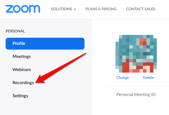 - Once your meeting is done, go to the Zoom Web portal, sign in and go to the **Personal** section in the navigation menu. Select **Recordings** to access your recording.
