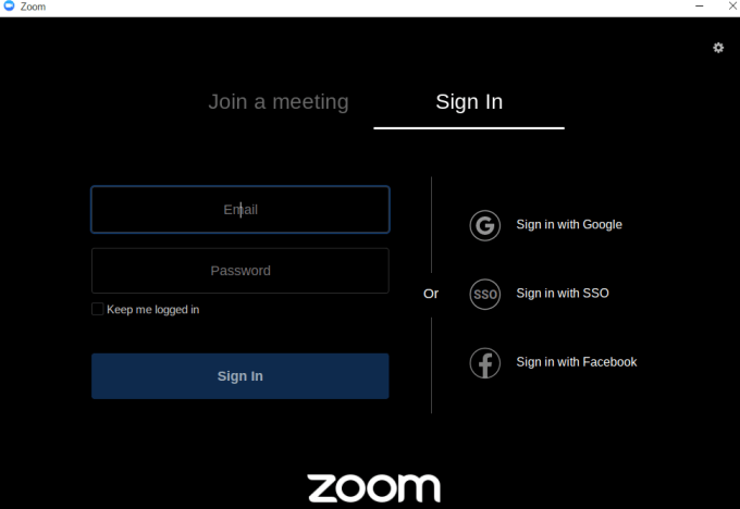 - Sign in with your **Zoom credentials **(Zoom, Google or Facebook account) or using SSO. If you’re using a school-issued Chromebook, enter your school sign-in credentials.