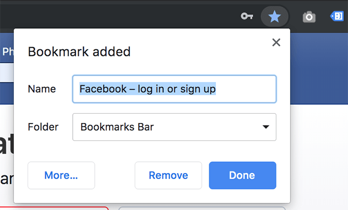 - Click on More on the following screen as you need to edit the bookmark before you save it.