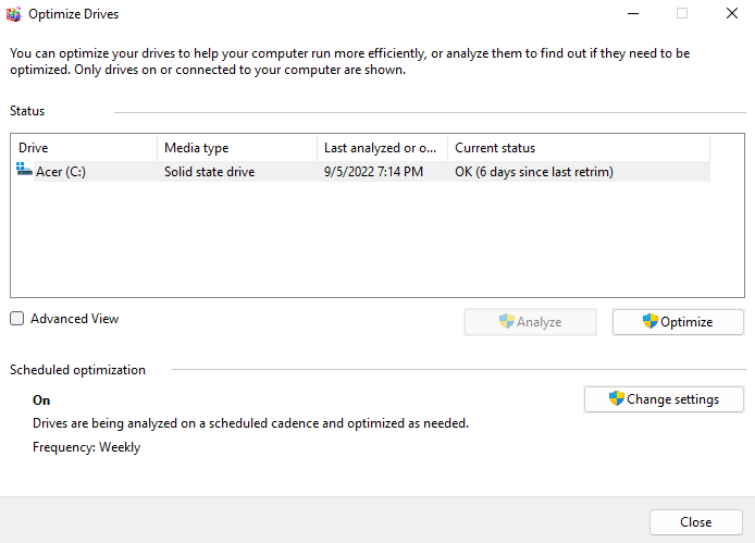 That doesn’t mean you can’t optimize your drives manually. SSDs don’t need defragmentation, but an older HDD will benefit, especially if the scheduled Windows maintenance doesn’t take place due to frequent shutdowns.