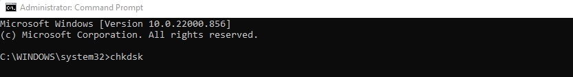 - Now just type chkdsk and press enter.