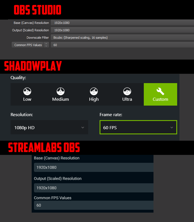 To test what resolution and frame rate is best, use the **record **button on NVIDIA Shadowplay, OBS Studio, or OBS Streamlabs.