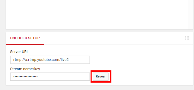 - Under the Encoder Setup, click Reveal next to stream name/key.