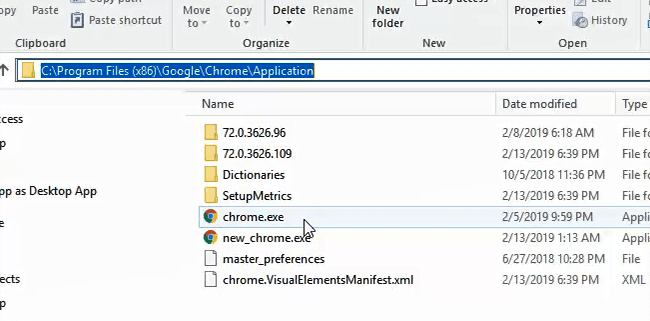 Navigate to where Chrome is installed on your computer. It will likely be in: C:\Program Files (x86)\Google\Chrome\Application. If you can’t find it there, search for Chrome.exe in Windows Explorer.
