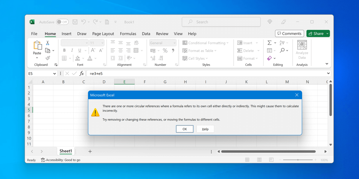 Fix these references by changing the formula or cell reference accordingly. For instance, you can copy and paste the data you’re using elsewhere and update your formula to use that data instead, allowing you to reference it without entering a circular reference loop.