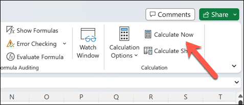- Locate the Calculation group and press the Calculate Now button.