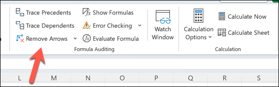 - To remove the arrows (after making changes), press the Remove Arrows button in the Formula Auditing group.