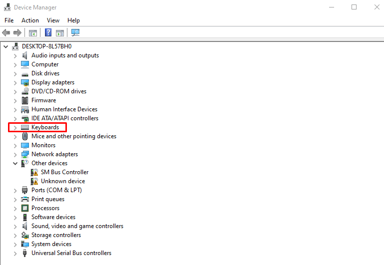 - Go to the Keyboards section and click the down arrow to expand it.