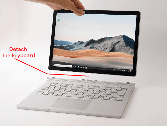 If you’re a Surface laptop user, you can easily detach the keyboard from the device. The keyboard is connected to the device with the connector pins. When your keyboard suddenly stops working, sometimes the issue might be a loose connection. Try detaching and reconnecting the keyboard.