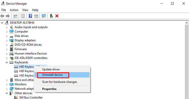 - Right-click on the drivers and select Uninstall. Do this for all the listed drivers under the Keyboard section.