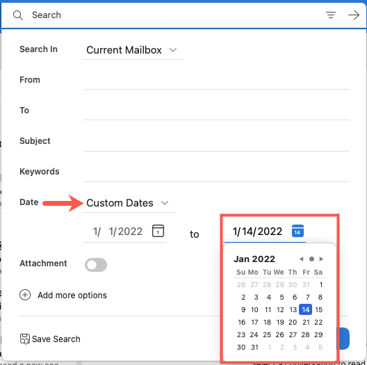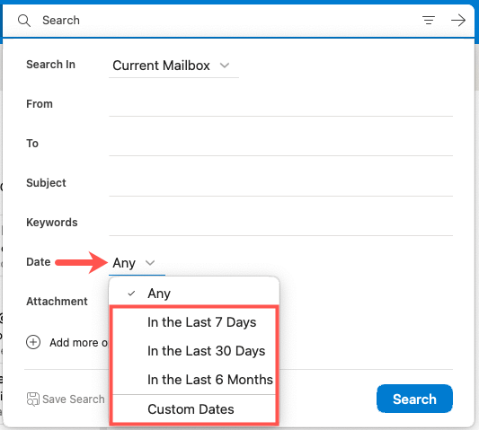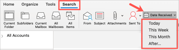 Search Outlook Emails by Date on Mac