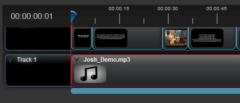 - Drag the audio file from Project Files to an empty track on the Timeline. Audio files will have an icon of a musical note on them (versus a thumbnail image if the file is an image or video). * If the song is longer than your video, click and drag the right edge of the audio clip to the left, which will cause the audio track to end earlier. * If the song isn’t long enough for your video, you can always add multiple audio files or even the same one multiple times.