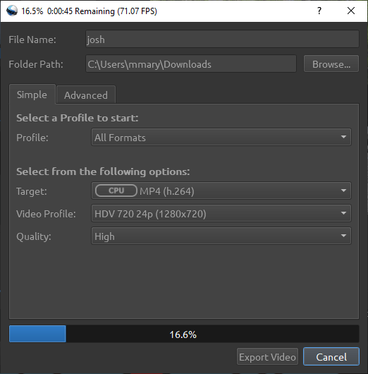 - Browse to the folder where you want the exported video to be saved.