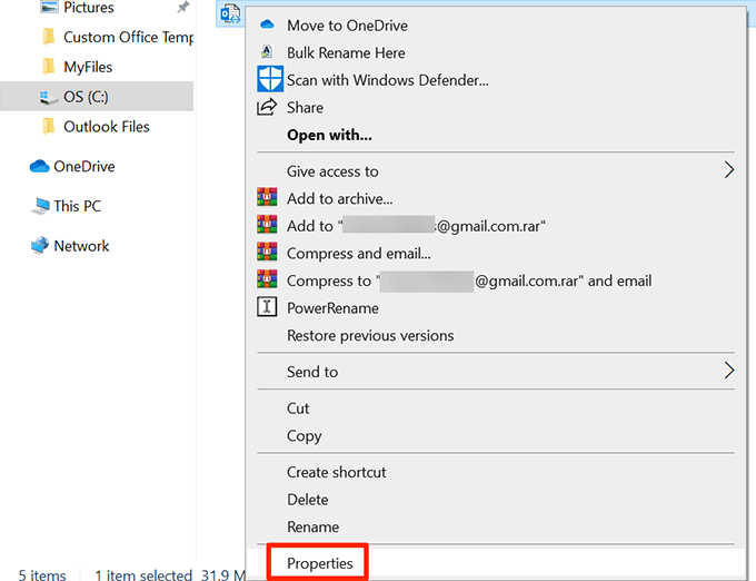 - Launch **File Explorer **and head to your Outlook data file’s directory. Use the first section in this guide to find where Outlook saves the data files.