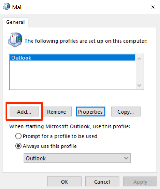 You can now create a new Outlook profile to replace your old and corrupted one. Keep your email logins handy as you’ll need them to set up your email account.