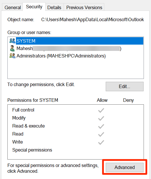 Issues due to incorrect file permissions are common on Windows machines. In this case, your Outlook issue could be due to an incorrect data file ownership permission setting.