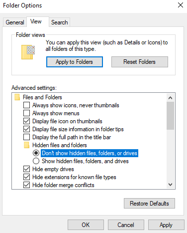 Disable Viewing Hidden Files In Windows