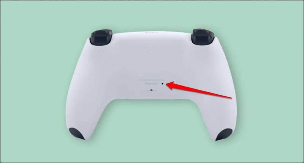 - Check the back of the DualSense controller for a small hole (to the right of the SONY logo). A reset button is inside the hole. Use a paperclip, push pin, or office pin to push down the reset button for 3-5 seconds.
