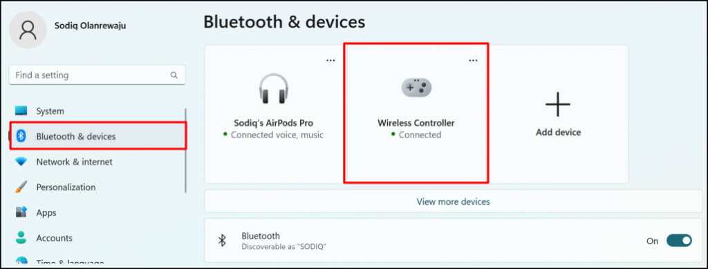 - Press the PS button on your DualSense wireless controller to reconnect it to your computer. Go to Settings > Bluetooth & devices and ensure your controller’s status reads “Connected.”