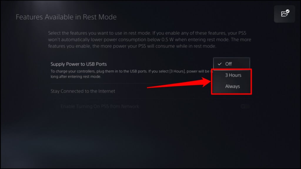 Your console may not charge the controller if it’s in rest mode. So, ensure your PS5 is powered on and not in rest mode. Alternatively, configure your console to supply power to the USB ports in rest mode.