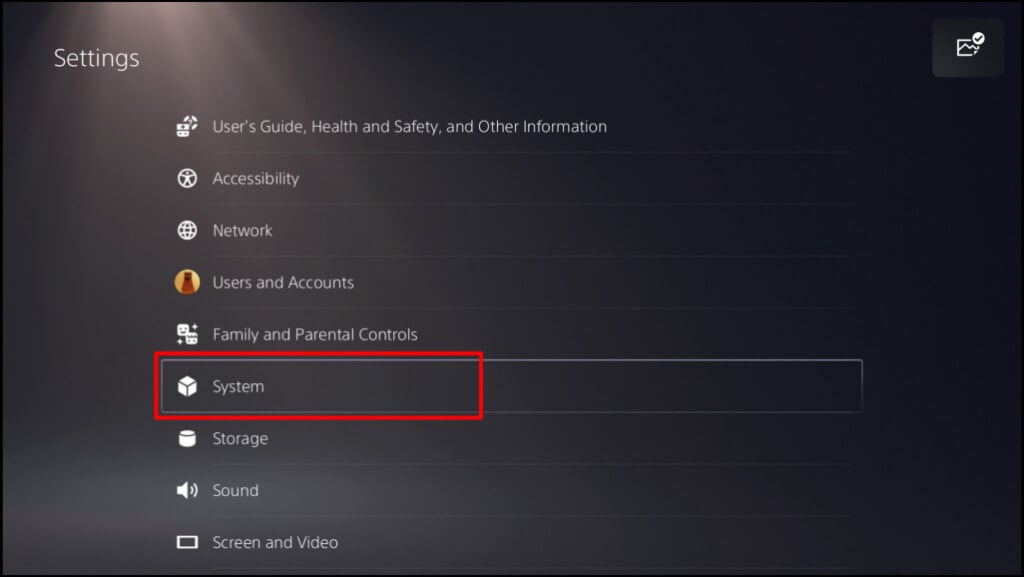 - Select the gear icon in the top-right corner of the PS5 home screen to open the settings menu.