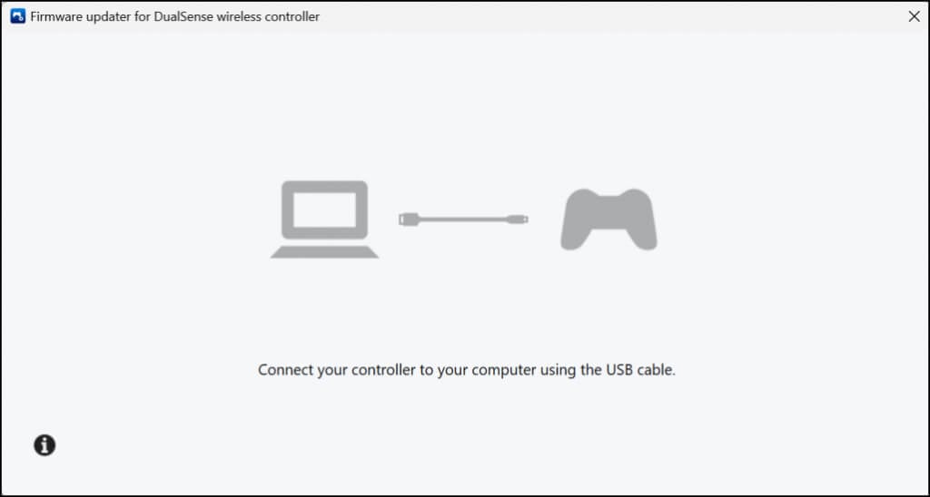 - Launch the Firmware updater app and connect the DualSense wireless controller to your PC using a compatible USB cable.