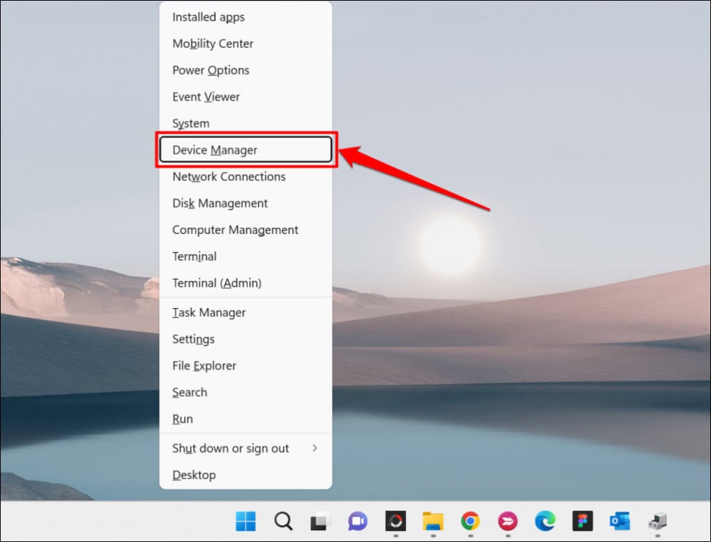 - Press Windows key + X or right-click the Start Menu and select Device Manager on the Quick Access menu.
