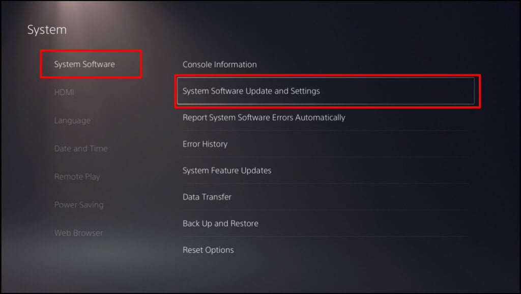 - Select System Software on the sidebar and choose System Software Update and Settings.